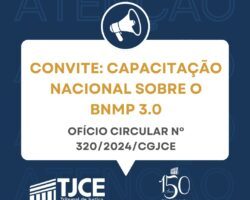 A Corregedoria convida a todos(as) os(as) magistrados(as) e servidores(as) das Unidades Judiciárias do Estado do Ceará para participarem da CAPACITAÇÃO NACIONAL SOBRE O BNMP 3.0, promovida pelo...• Publicado em: 30/08/2024