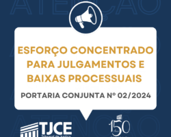 O Poder Judiciário do Ceará realizará, entre os dias 26 e 30 de agosto, esforço concentrado das unidades judiciárias de 1º e 2º Graus para julgamento de processos judiciais, e depois, no...• Publicado em: 05/08/2024
