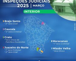 O cronograma do 1º Ciclo de Inspeções Judiciais a serem realizadas pela Corregedoria-Geral da Justiça durante o mês de março de 2025 em Fortaleza foi disponibilizado por meio da Portaria nº...• Publicado em: 07/03/2025