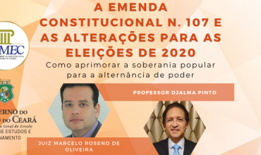 08:30 à 19:00 horas – Seminário promovido pela Escola Judiciária Eleitoral em parceria com a ESMEC e com a Universidade de Fortaleza, dirigido a Juízes e Promotores Eleitorais, alunos do Curso de Especialização em Direito Eleitoral da ESMEC e alunos do Curso de Direito da UNIFOR; Teatro Celina Queiroz, na UNIFOR; outras informações podem ser […] |