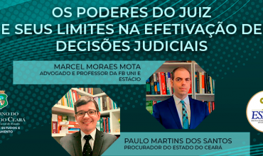 08:00 horas – Com o Juiz Federal e Professor Danilo Fontenelle Sampaio (Diretor do Foro da Justiça Federal no Ceará), enfrentando o tema: “Gestão Administrativa e Princípio da Eficiência” |