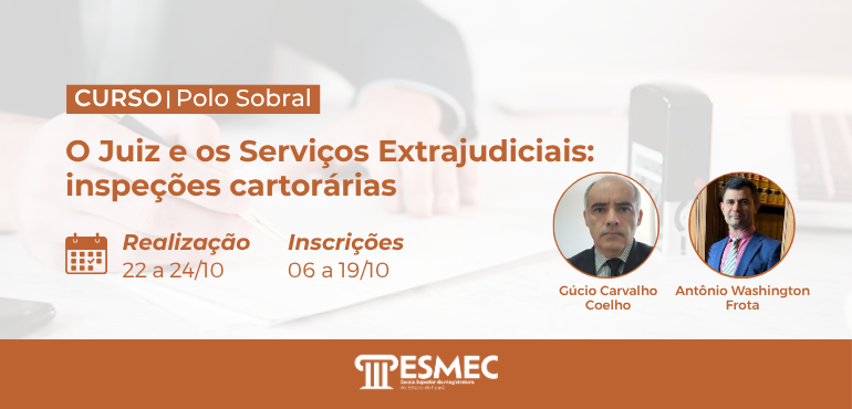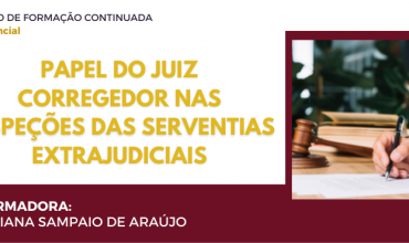 ![]() Inscrições prorrogadas para o curso “O Juiz e os Serviços Extrajudiciais: inspeções cartorárias”