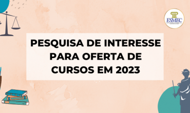 A Pesquisa de Interesse em Cursos e Eventos de 2026 da Escola Superior da Magistratura do Estado do Ceará (Esmec) está disponível. Até o próximo dia 23 de novembro, a Escola vai coletar informações de magistradas, magistrados, servidoras e servidores no planejamento das formações do próximo ano. Clique aqui e participe! POR QUE PARTICIPAR? […] |
