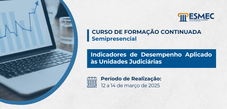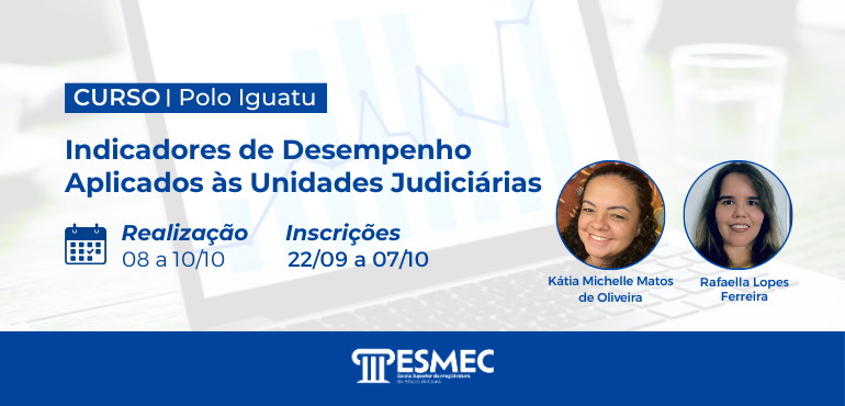 ![]() Inscrições prorrogadas para o curso “Indicadores de Desempenho Aplicado às Unidades Judiciárias”, no Polo de Iguatu