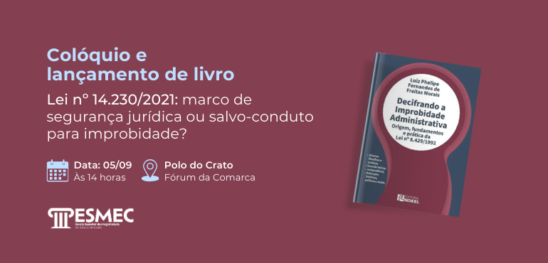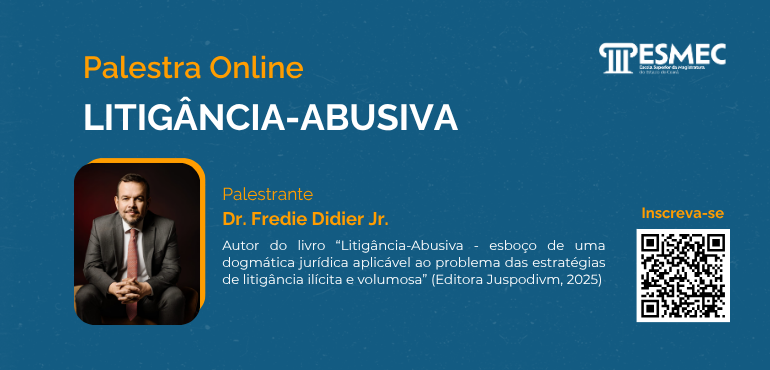 09:00 horas – Palestrante: Dr. Juvêncio Vasconcelos Viana, Advogado, Procurador do Estado e Professor da UFC. Local: ESMEC (Escola Superior da Magistratura do Estado do Ceará) Auditório Des. Fernando Luiz Ximenes Rocha – Rua Ramires Maranhão do Vale, nº 70. Água Fria – Fortaleza – CE. |