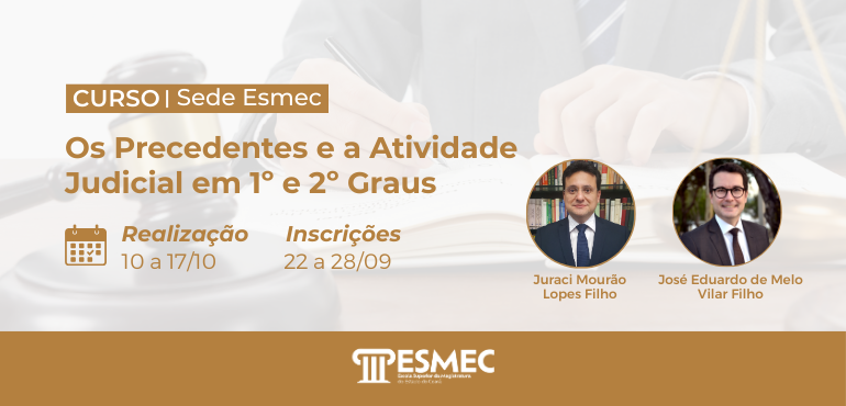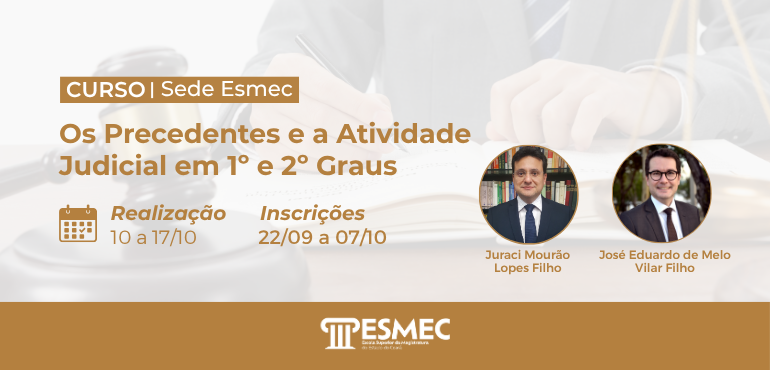 ![]() Inscrições prorrogadas para o curso “Os precedentes e a atividade judicial em 1º e 2º graus”
