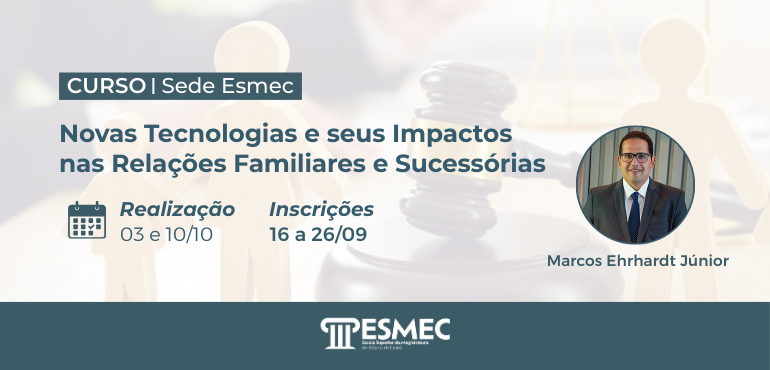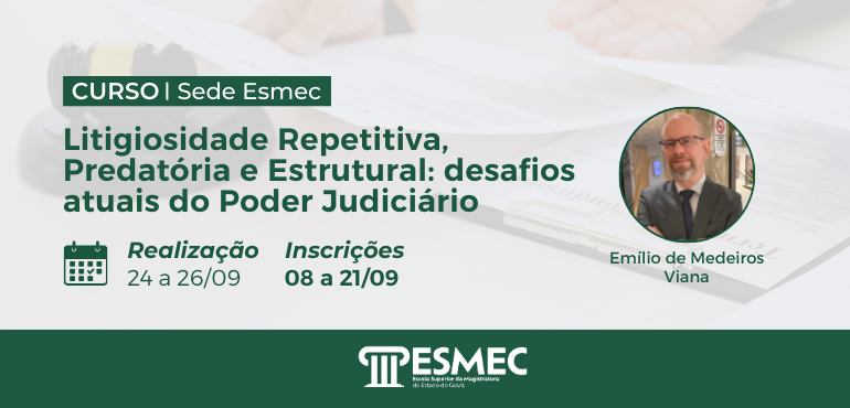 A Escola Superior da Magistratura do Estado do Ceará (Esmec) realizará, entre os dias 22 e 24 de outubro de 2025, o curso de Formação Continuada “O Juiz e os Serviços Extrajudiciais: inspeções cartorárias”, no Polo de Aprendizagem de Sobral, com os formadores Gúcio Carvalho Coelho e Antônio Washington Frota, na modalidade semipresencial, de […] |