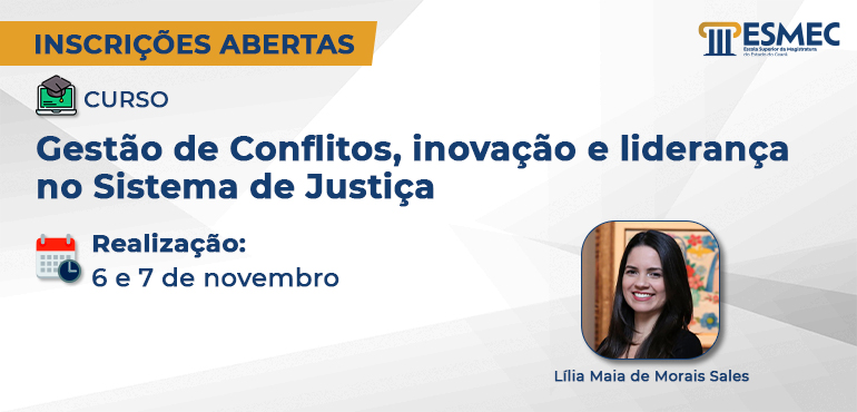 Nos dias 6 e 7 de novembro, a Escola Superior da Magistratura do Estado do Ceará (Esmec) recebe o curso de formação continuada “Gestão de Conflitos, inovação e liderança no Sistema de Justiça”. A capacitação será realizada pela formadora Lília Maia de Morais Sales, na modalidade semipresencial. As inscrições estão abertas até o próximo […] |