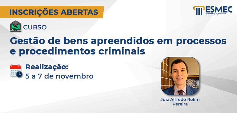 ![]() Curso “Gestão de bens apreendidos em processos e procedimentos criminais” está com inscrições abertas