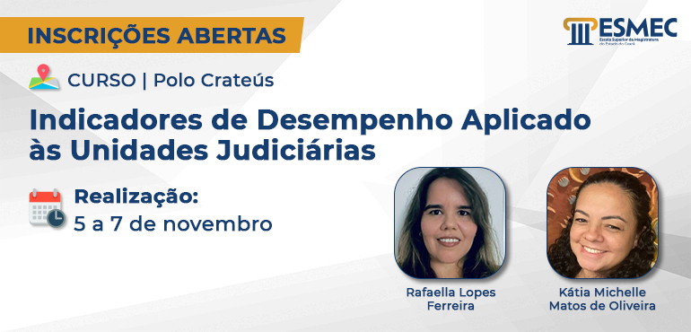 ![]() Polo de Crateús: abertas inscrições para o curso “Indicadores de Desempenho Aplicado às Unidades Judiciárias”
