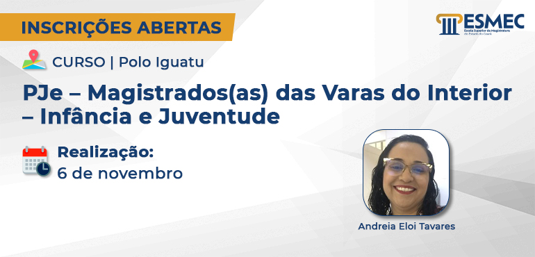 ![]() Iguatu: curso para capacitar magistrados(as) da Infância e Juventude no PJe está com inscrições abertas