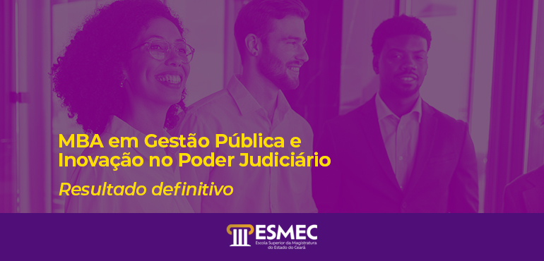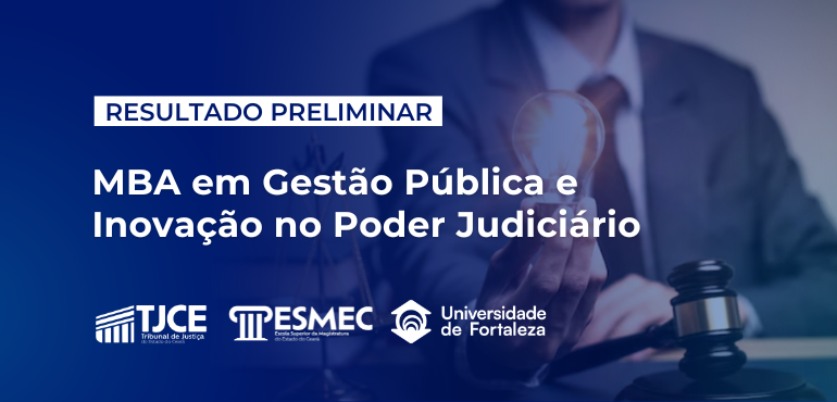 Em cumprimento aos termos do Edital n. 04/2025, a Escola Superior da Magistratura do Estado do Ceará (Esmec) divulga o resultado preliminar do processo seletivo para o curso de MBA em Gestão Pública e Inovação no Poder Judiciário. Os eventuais recursos do resultado provisório deverão ser dirigidos à Comissão de Seleção e encaminhados para o […] |