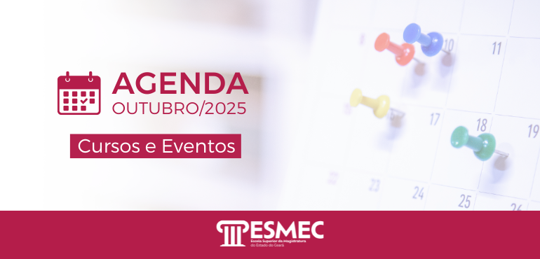 A Escola Superior da Magistratura do Estado do Ceará (Esmec) divulga a agenda de Cursos e Eventos do mês de outubro. Na programação estão previstos seis cursos de Formação Continuada, o último módulo do Curso de Formação de Formadores (FOFO) e três eventos de extensão. Confira: Coordenação de Formação e Aperfeiçoamento Em regra, os […] |
