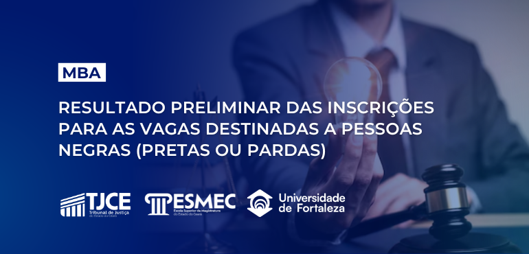 ![]() Esmec divulga resultado provisório das inscrições para as vagas destinadas a pessoas negras (pretas ou pardas) no MBA em Gestão Pública e Inovação no Poder Judiciário