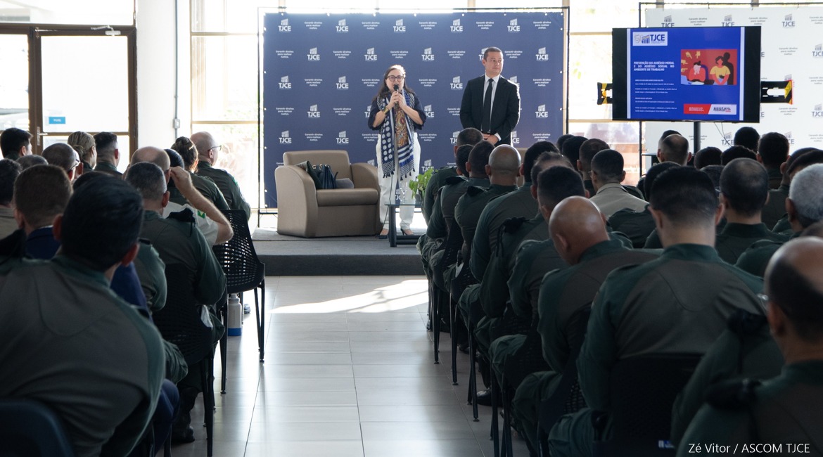 Policiais militares que atuam no Poder Judiciário participam de palestra sobre prevenção do assédio moral e sexual