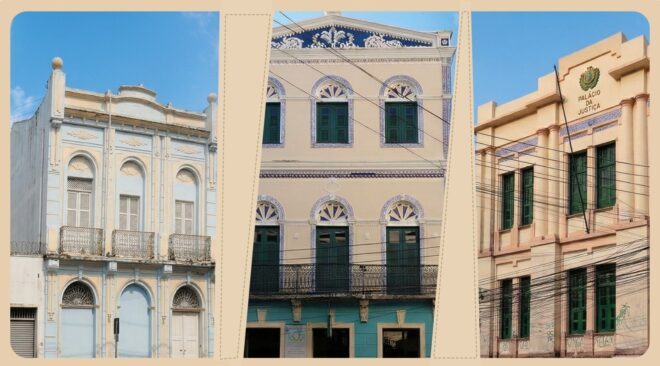 Da esquerda para direita: primeira sede do TJCE, na rua Senador Pompeu; Sobrado do Dr. José Lourenço, segunda sede do TJ; terceira sede do Tribunal, na rua Barão do Rio Branco