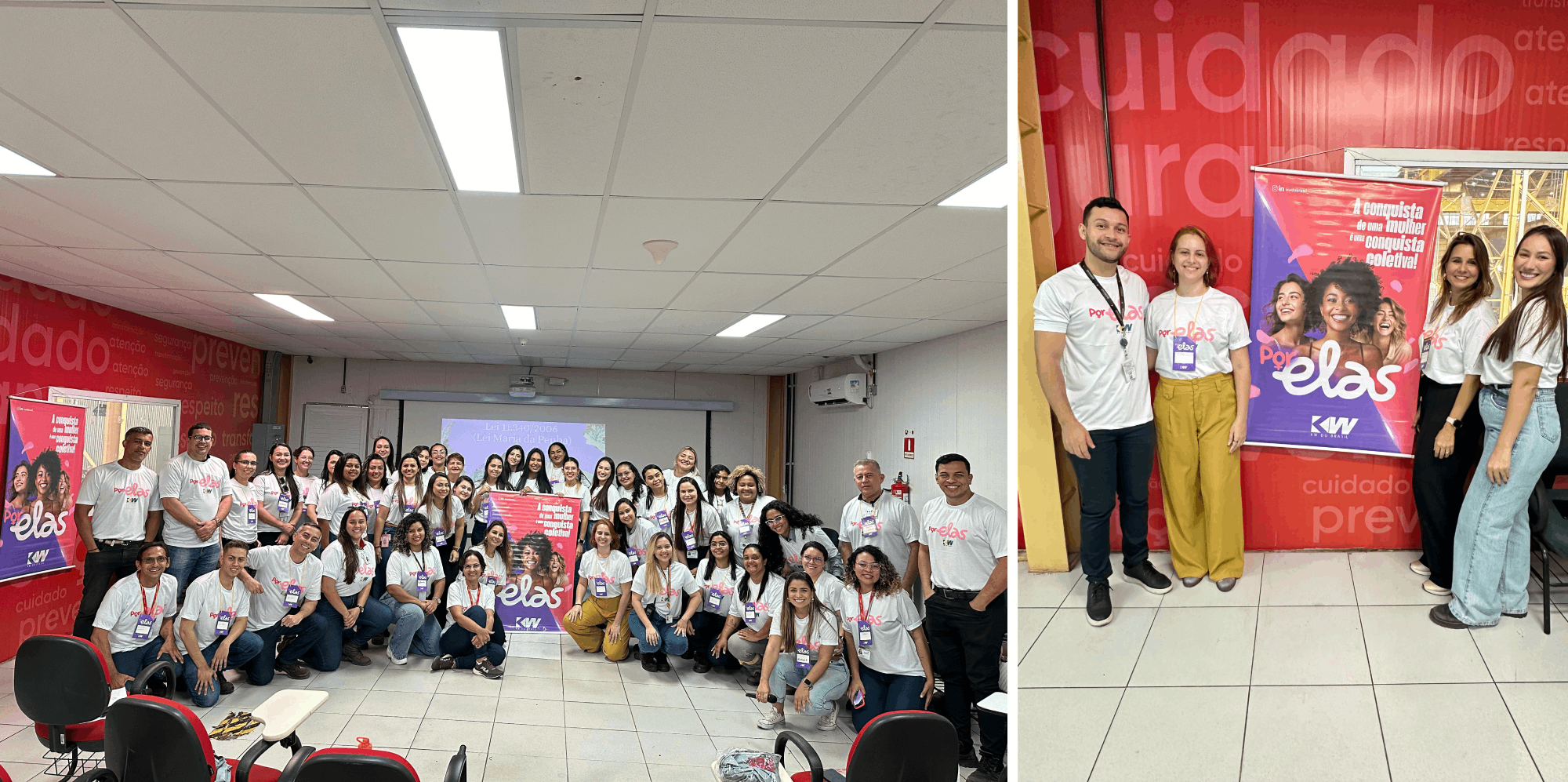 O Tribunal de Justiça do Ceará (TJCE), por meio da Coordenadoria Estadual da Mulher em Situação de Violência Doméstica e Familiar, apoiou a Empresa KW do Brasil na implantação do Programa “Por Elas” no estado do Ceará. O evento foi realizado no dia 18 de setembro de 2024, no espaço da Usina Siderúgica ArcellorMittal, no Pecém/ Ceará. A servidora Roberta Gadelha Vieira Braga e a estagiária de pós-graduação em psicologia Hanna Helena Gadelha S. Othon, integrantes da Coordenadoria da Mulher do TJCE, ministraram a palestra abordando o tema da violência doméstica e familiar contra a mulher e informando a rede de apoio presente em todo estado do Ceará.