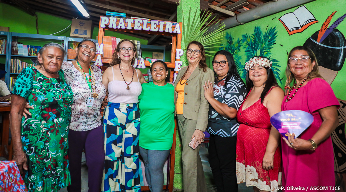 O TJCE, por meio do 1º Juizado de Violência Doméstica e Familiar de Fortaleza, instalou uma Prateleira Maria da Penha na Escola Indígena da Ponte, em Caucaia, em parceria