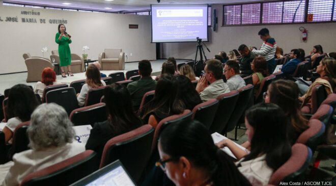 Durante a abertura da programação, a presidente da Coordenadoria Estadual da Mulher em Situação de Violência Doméstica e Familiar, desembargadora Vanja Fontenele Pontes, destacou a importância do encontro. “Esse compartilhamento de boas práticas é fundamental para que possamos aprimorar a prestação de serviços e oferecer um melhor acolhimento às vítimas”, afirmou.