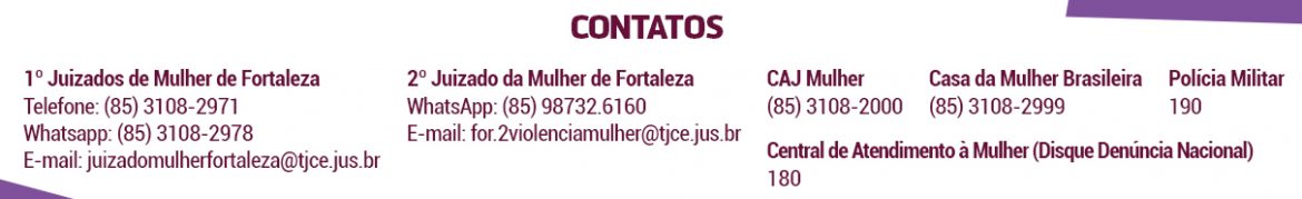 Em regra, é preciso se identificar ao atendente da CAJ Mulher, porque os casos tramitam em segredo de Justiça. Quando se trata de denúncias, são repassados os números 190 (Polícia) ou 180 (Central de Atendimento específica). Caso a mulher queira ser atendida por telefone, ela deverá falar com a CAJ Mulher Atendimento Remoto, pelo número (85) 3108-2000, e selecionar a opção 1.