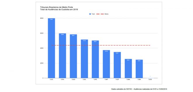 De acordo com o Sistema de Audiências de Custódia (Sistac) do Conselho Nacional de Justiça (CNJ), o TJCE ocupa o primeiro lugar no ranking nacional. De janeiro a agosto deste ano, os magistrados da Vara de Custódia de Fortaleza realizaram 7.994 audiências. Em segundo lugar, está o Tribunal de Justiça do Pará, com 5.968, seguido do Judiciário goiano, com 5.841. Confira no gráfico.