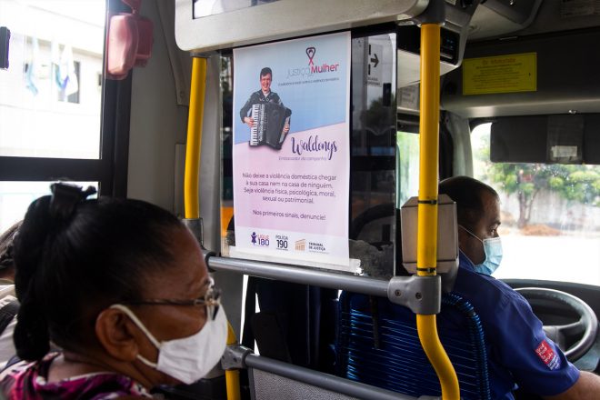 Campanha em transportes públicos espalha mensagem contra violência doméstica