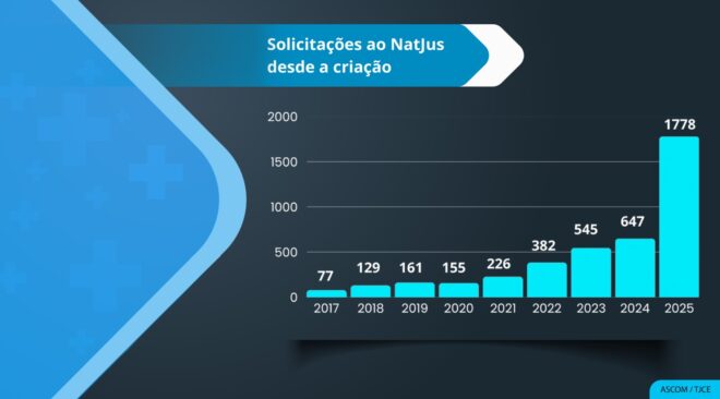 O Núcleo de Apoio Técnico ao Judiciário (Nat-Jus) recebeu, em 2025, 1.778 solicitações para auxiliar em decisões sobre matérias relacionadas à saúde. O número quase triplicou (crescimento percentual de 174,8%) em comparação com as 647 consultas feitas à equipe técnica em 2024.