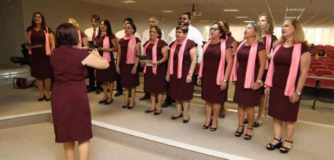 Pela manhã, o Coral se apresentou no Fórum Clóvis Beviláqua para homenagear as juízas e servidoras. As duas apresentações foram conduzidas pela maestrina Domísia Sabino Almeida, do Conservatório de Música Alberto Nepomuceno, com participação de sopranos e contraltos (vozes femininas), tenores e baixos (vozes masculinas).