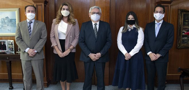 O corregedor-geral da Justiça do Ceará, desembargador Paulo Airton Albuquerque Filho, recebeu, nesta segunda-feira (08/02), representantes da Associação Cearense de Magistrados (ACM). O objetivo do encontro foi falar sobre o Plano de Gestão 2021-2023, que será divulgado oficialmente após publicação do Plano de Gestão da Presidência do Tribunal de Justiça do Ceará (TJCE).