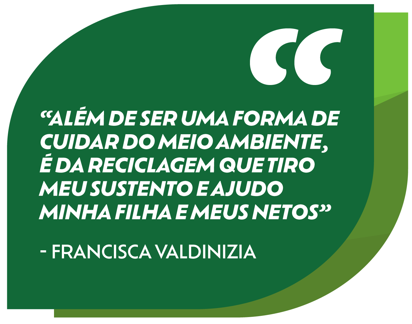 A iniciativa também promove inclusão social e geração de renda para famílias que dependem da reciclagem. No galpão da Associação Rosa Virgínia, localizado no Conjunto Esperança, em Fortaleza, muitas vidas são impactadas diretamente pelas doações do TJCE. É o caso da dona Francisca Valdinizia Marinho da Silva, de 47 anos, que trabalha com reciclagem há mais de 5 anos. “Essas doações são muito importantes para mim e para os meus companheiros de trabalho. Além de ser uma forma de cuidar do meio ambiente, é da reciclagem que tiro meu sustento e ajudo minha filha e meus netos”, relata.