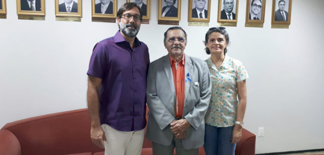 O jornalista, historiógrafo, memorialista e colecionador Nirez acompanhou o encerramento da exposição, na manhã de hoje, ao lado de sua filha, a bibliotecária Terezinha de Azevedo Narbal de Oliveira. Eles estiveram no gabinete do coordenador-geral da Esmec, juiz Ângelo Bianco Vettorazzi, e agradeceram a parceria com a Escola.
