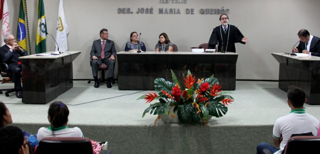 Integraram também a mesa dos trabalhos o procurador estadual Fernando Antônio Costa de Oliveira, Secretário Chefe do Gabinete da Vice-Governadora; e a diretora da Escola Dom Lustosa, professora Maria Djanine Medeiros Leão. Além de um aluno escolhido para ser o “réu”, outros sete foram indicados para fazer parte do corpo de jurados.