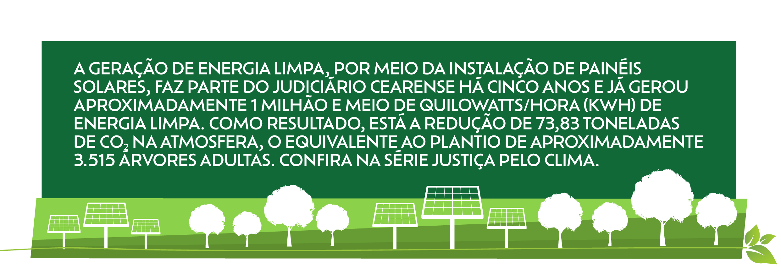 Atualmente, o Judiciário cearense já opera com energia limpa em dois Fóruns localizados no interior do estado, nas comarcas de Russas e Itapajé. Desde fevereiro de 2020, essas unidades vêm gerando energia suficiente para suprir integralmente suas demandas de consumo, além de contribuir parcialmente para o abastecimento energético de outras unidades.