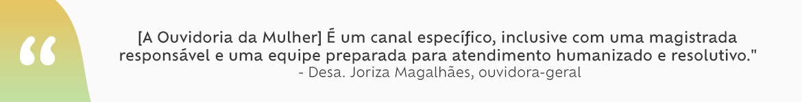 “É um canal específico para atender a mulher, inclusive com uma magistrada responsável e uma equipe preparada para atendimento humanizado e resolutivo. Com base nas diversas informações, sugestões, reclamações, denúncias, críticas e elogios sobre a tramitação de procedimentos administrativos e judiciais relativos à mulher, a Ouvidoria funciona como instrumento de aprimoramento da gestão pública da política de enfrentamento à violência contra a mulher no âmbito do Poder Judiciário”, explica a desembargadora Joriza Magalhães, ouvidora-geral do Judiciário cearense.