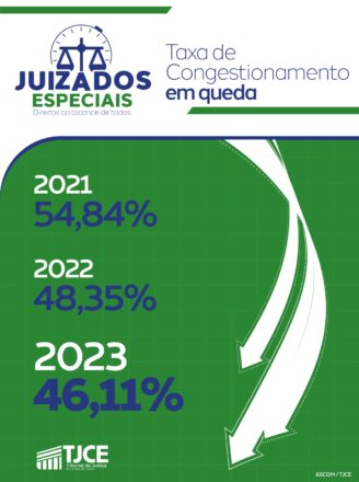 Os trabalhos desenvolvidos pelos colaboradores dos Juizados Especiais refletem avanços e conquistas para o Judiciário cearense, beneficiando, especialmente, a população. A taxa de congestionamento, que mede o percentual de processos não resolvidos ao final de um período, vem reduzindo nos últimos dois anos. Em 2021, o Sistema de Juizados Especiais finalizou o ano com a taxa de congestionamento em 54,84%. Em 2022, esse valor caiu para 48,35% e, em 2023, teve nova queda: 46,11%.
