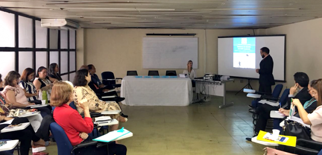 O psicólogo apresentou aos juízes, promotores e defensores da Comarca de Fortaleza o Programa Acolher, que foi criado em 2011 e já atendeu cerca de 90 casos, dos quais 20% das crianças foram realmente encaminhadas para adoção e 80% permaneceram na família natural no Estado de Pernambuco.