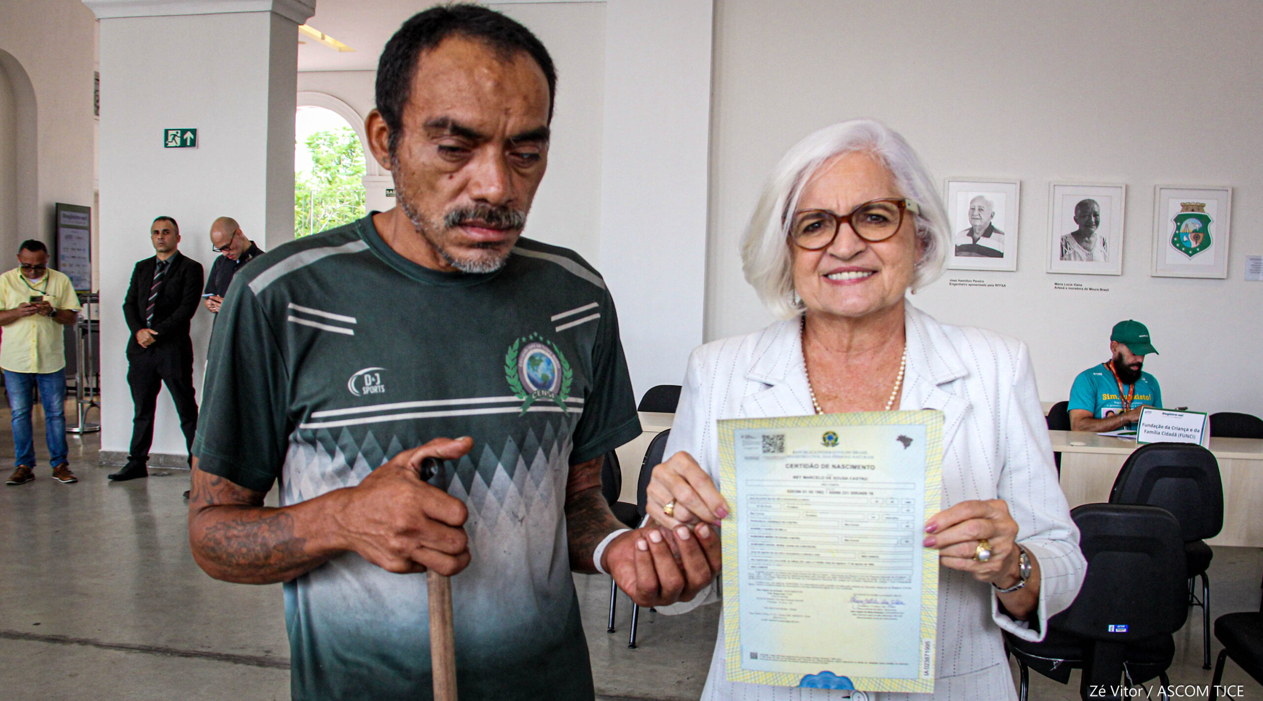 A corregedora-geral da Justiça, desembargadora Marlúcia de Araújo Bezerra, fez a entrega das primeiras certidões emitidas já nesta edição. Ela destacou que a regularização documental é um passo essencial para o exercício pleno da cidadania e para a inserção social. “Com esta certidão, vocês podem tirar os demais documentos e exercer todos os direitos de cidadania”, comentou ao entregar os documentos.