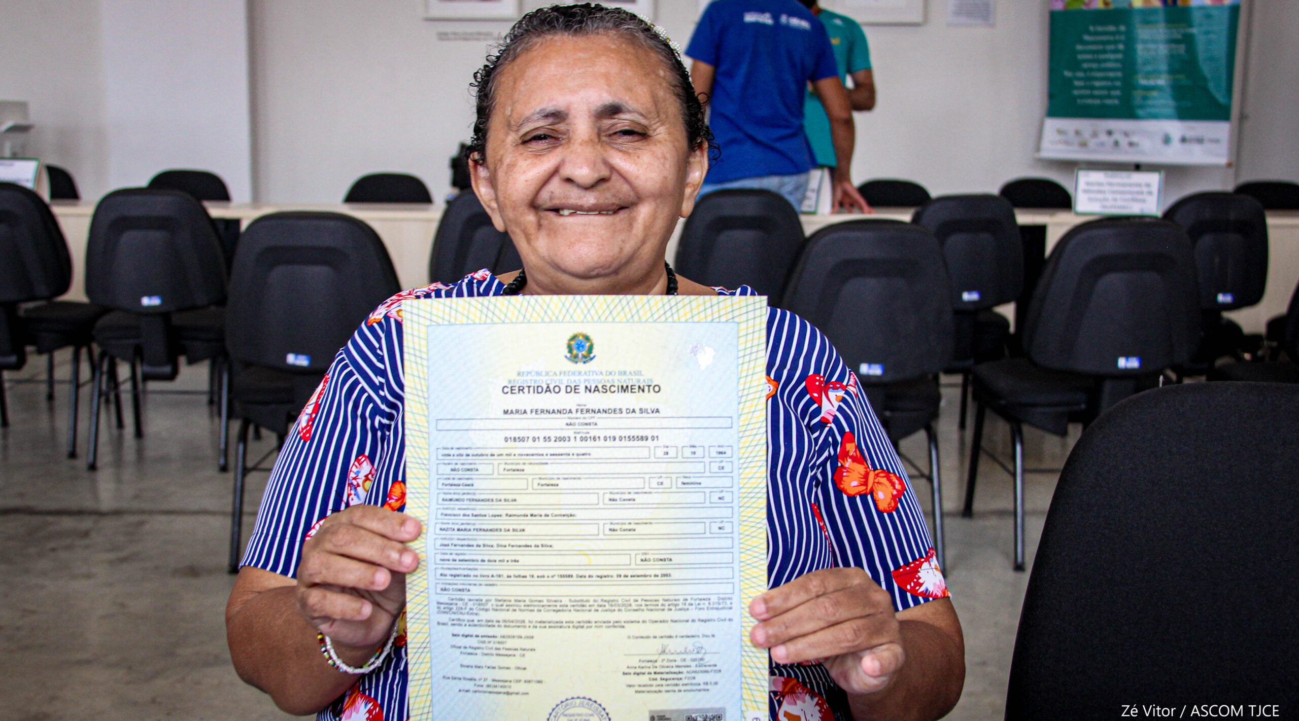 A ação também alcançou pessoas idosas, como a aposentada Maria Fernanda Fernandes da Silva, de 62 anos, que reside no Lar Três Irmãs, Organização Não Governamental (ONG) que acolhe idosos em situação de vulnerabilidade social, abandono familiar ou situação de rua. “Eu já tenho todos os outros documentos, só precisava do registro. Tinha vontade de tirar, e agora consegui!”, disse, segurando firme seu documento.
