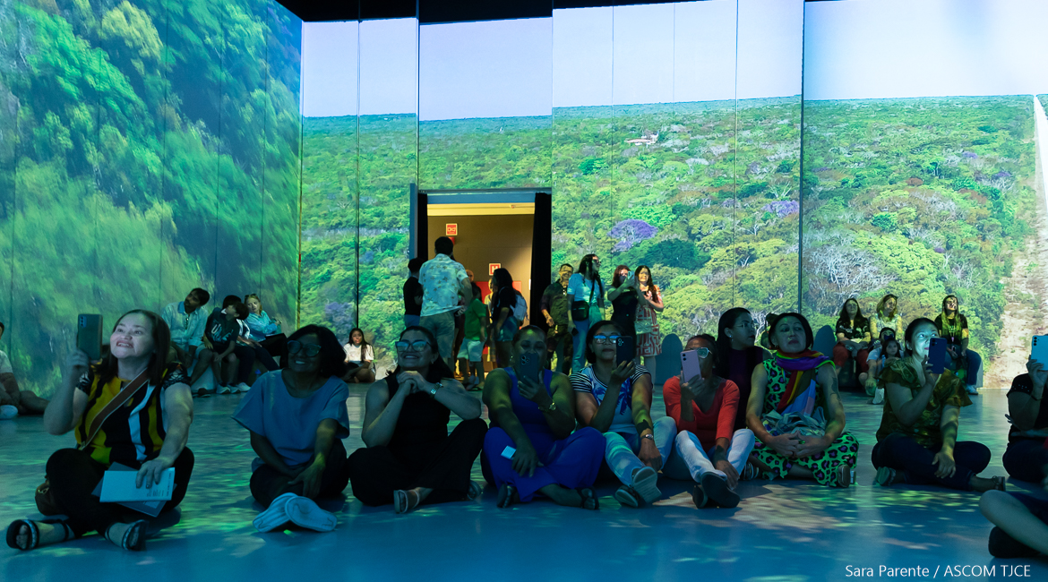 Voltada para os auxiliares de serviços gerais do Fórum Clóvis Beviláqua (FCB), a iniciativa, nesta edição, proporcionou uma visita guiada à exposição “Negro é um rio que navego em sonhos”, em cartaz na Galeria da Liberdade, seguida da imersão no acervo do Museu da Imagem e do Som (MIS). O roteiro cultural dialoga com o Dia Internacional da Mulher Negra e Caribenha, celebrado em 25 de julho, e buscou fortalecer nas integrantes do projeto os valores de respeito à diversidade, à equidade e à justiça social, contribuindo para a formação crítica e cidadã.