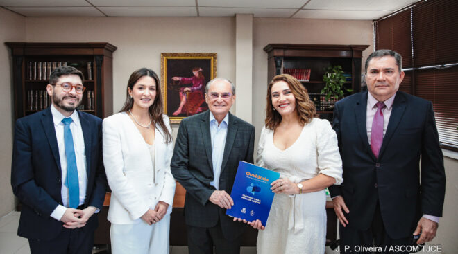 Participaram da apresentação na Presidência do TJCE os juízes auxiliares da Ouvidoria Edson Feitosa dos Santos Filho, que cuida dos canais de atendimento relacionados à Comarca de Fortaleza; Giselli Lima de Sousa Tavares, que atua no canal exclusivo para o recebimento de manifestações sobre defesa dos direitos da mulher; e Marcos Aurélio Marques Nogueira, que responde pelos canais voltados à defesa dos direitos humanos, do meio ambiente, e em outros que garantam ampla acessibilidade.
