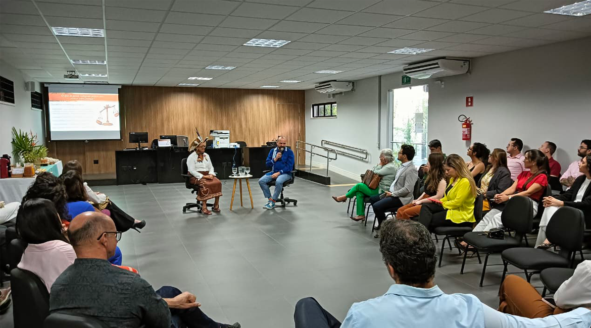 Por fim, a palestra ainda refletiu sobre a Justiça Restaurativa, que tem origem indígena, e como pode o Judiciário lidar dos conflitos sociais gerados pelas mudanças climáticas, novas formas de organização social, considerando sempre o Judiciário como parte inseparável da sociedade.
