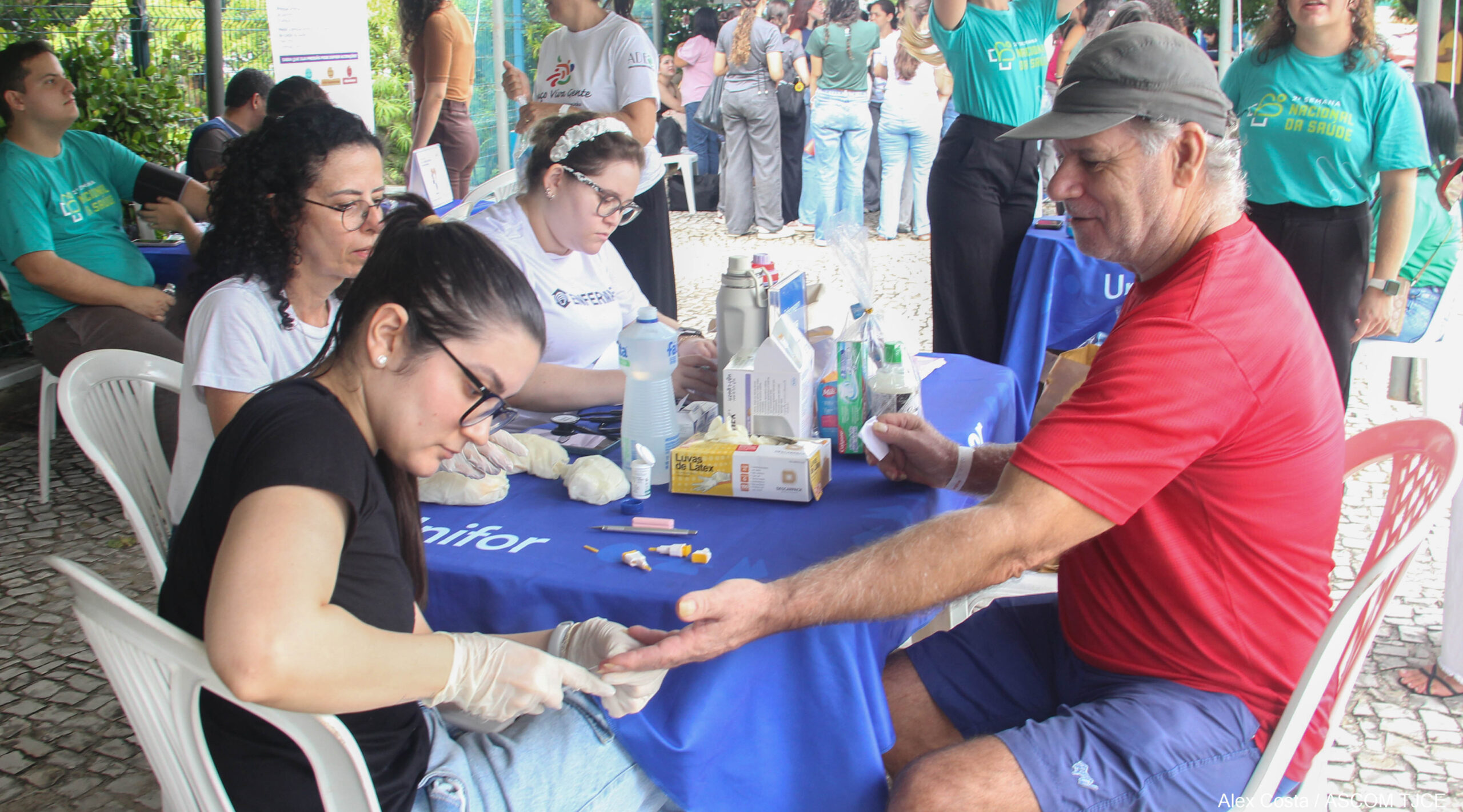 O auxiliar de serviços gerais esteve, nesta terça-feira (07/04), na Praça da Justiça, em frente à Escola Superior da Magistratura do Ceará (Esmec), e foi uma das pessoas atendidas durante a 2ª Semana Nacional da Saúde 2026. Francisco José estava com a esposa, a dona de casa Tânia Alves, que também aproveitou a ação, promovida pelo Poder Judiciário estadual em parceria com a Universidade de Fortaleza (Unifor).