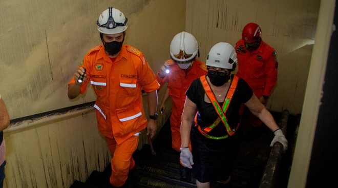 Segundo o major Erle Rocha, a visita só foi possível após laudo técnico de liberação da Superintendência de Obras Públicas (SOP) do Estado. “Ratificamos que ficamos na área que foi liberada pelos engenheiros, que é da metade para o final do prédio, não trespassamos essa área. Nessa parte que entramos, embora muito suja de fuligem, tem muita coisa ainda preservada, que já iniciamos o resgate, como toda a parte do memorial, da capela. Mas tem sim muita coisa ainda para ser resgatada, como bens pessoais, equipamentos. Vamos aos poucos continuar essa operação de resgate até que a gente consiga retirar tudo”, destacou.