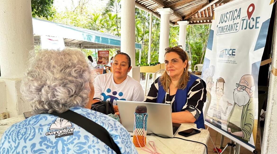 O Poder Judiciário cearense promoveu mais uma edição do projeto “Justiça Itinerante”, a última de 2025. No sábado (06/12), a equipe do Núcleo Permanente de Métodos Consensuais de Solução de Conflitos do Tribunal de Justiça do Ceará (Nupemec/TJCE) esteve na 17ª Feira do Zé, na Casa José de Alencar, para o atendimento de pessoas interessadas em solucionar conflitos de forma rápida e sem burocracia.