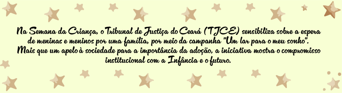 Em outubro, enquanto a maioria das crianças sonha em ganhar o brinquedo mais novo, dezenas de meninas e meninos em acolhimento cultivam um desejo bem mais fundamental, que não pode ser visto, nem tocado, apenas sentido: afeto, pertencimento e um lar feliz. Para contar algumas dessas histórias, a Assessoria de Comunicação do TJCE foi até uma das casas de acolhimento em Fortaleza, que exerce cuidados de crianças na faixa etária até 12 anos, para perguntar a elas: “Qual o seu maior sonho?”