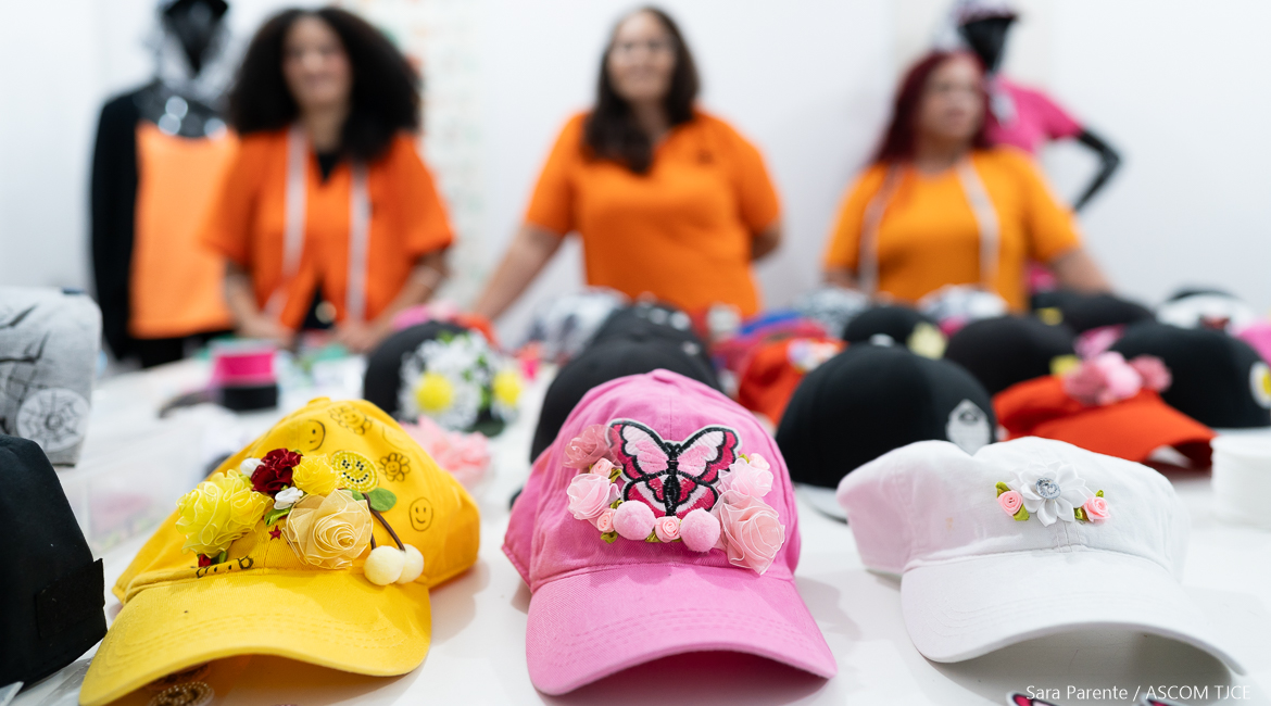 No ateliê de costura, os bonés ganham novos elementos de moda, como os lenços. O toque de estilo foi trazido pela jovem Ellen Vitória Orlando Farias, que se inspirou em influenciadoras digitais. “É muito bom a gente poder pegar essas referências e fazer do jeito que quiser”, destacou a facilitadora do Instituto de Assistência e Proteção Social (Iaps), parceiro do Poder Judiciário do Ceará na customização dos acessórios.
