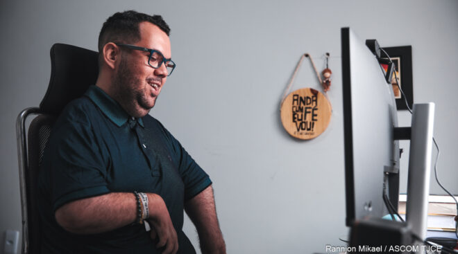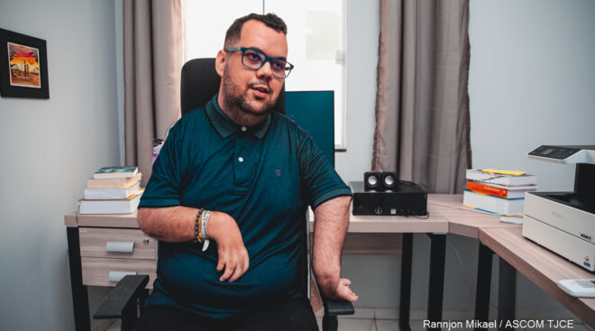 “Quando eu nasci, surgiram vários questionamentos sobre se eu ia conseguir estudar ou aprender alguma coisa. Infelizmente, ainda hoje lidamos com o capacitismo, que dificulta, impede e exclui. Naquela época, era ainda pior. Não sabiam se eu ia conseguir escrever ou estudar”, explica o servidor, que nasceu com artrogripose múltipla congênita, deficiência rara, caracterizada por múltiplas contraturas articulares.