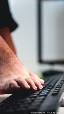 Auxiliado pela mãe, Robson conta que sempre sentiu, de maneira até instintiva, que poderia utilizar os pés para realizar suas atividades. Hoje, ele escreve em papéis, digita nos computadores, utiliza celulares e estuda livros usando somente os pés. “No Ensino Médio, surgiu o sonho de fazer Direito. Na minha região, não tinha faculdade pública de Direito e eu não podia pagar a particular. Então, eu vim para o Crato para fazer vestibular e entrar no curso dos meus sonhos. Depois disso, comecei a passar nos concursos, e estou no TJCE há quase dois anos e meio”, lembra.