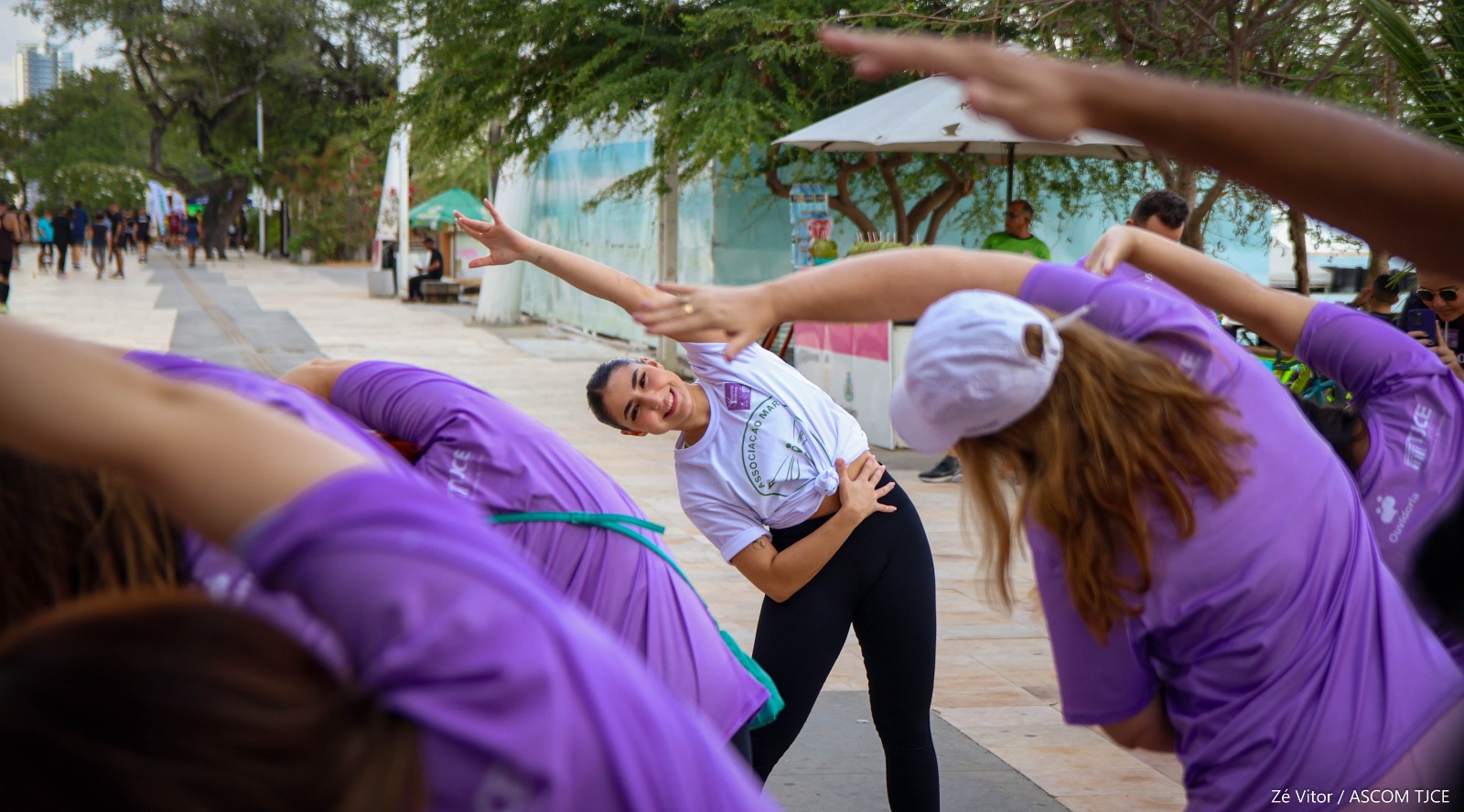 Integrando a programação, o momento contou ainda com aula de alongamento aberta ao público, realizada em parceria com a Associação Marta. Houve ainda distribuição de tapiocas e água de coco para os participantes. A atividade ao ar livre promoveu um momento de bem-estar físico e mental, reforçando o propósito da campanha na promoção de uma convivência respeitosa, segura e igualitária nos espaços compartilhados.
