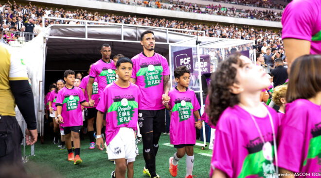 A ação coroou o fim do Campeonato Cearense 2026, que teve em seus jogos, ao longo dos últimos três meses, uma série de atividades da mobilização do TJCE. A campanha, lançada no dia 11 de janeiro deste ano, durante o Clássico das Cores entre Fortaleza e Ferroviário, contou também com distribuição de materiais informativos com telefones úteis de canais de denúncia, camisas alusivas e mensagens de conscientização exibidas nos telões dos estádios.